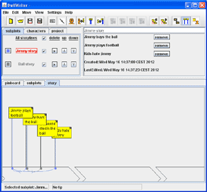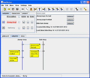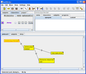 DuffWriter is a free program for writers, oriented towards planning and organizing stories with more complex structure.